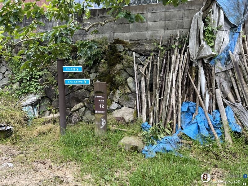 這裡是道標#12,路標:久保小學校3.7km、市平橋0.5km。