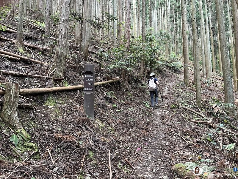 18:13,來到一本杉,此處與林道合流,豎立的路標卻只是屬於女人道(路標#40)。