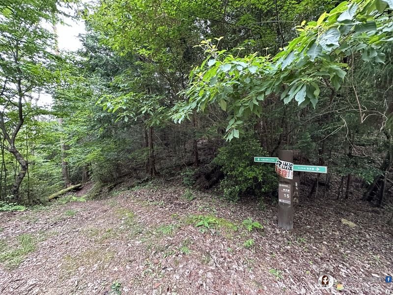 15:44,到了「戰場田和」,也是道標#15位置。這裡,黒河道與林道合流處,有著長板凳,可以休憩的場所。路標:久保小學校2.1km、市平橋2.1km。除此之外,多加了「要注意 熊出沒!」
