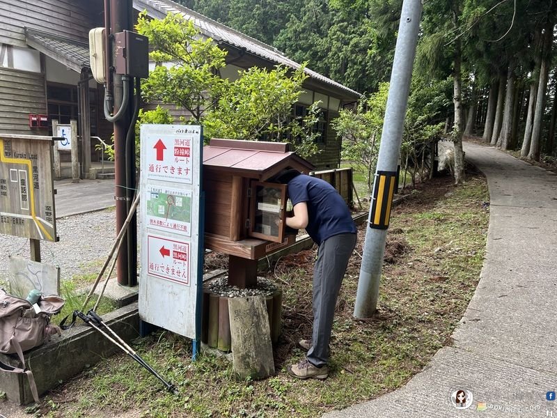 押印所旁邊一個路標指示:往粉撞峠的「黑河道」,可以通行;往黑河峠的「黑河道」因為倒木很多,不可以通行。