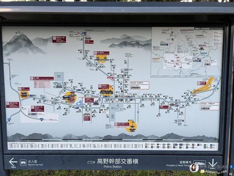 此刻天色仍未暗下來,最後以高野幹部交番附近一幅「高野山地圖」看板,作為結束黑河道的路程。