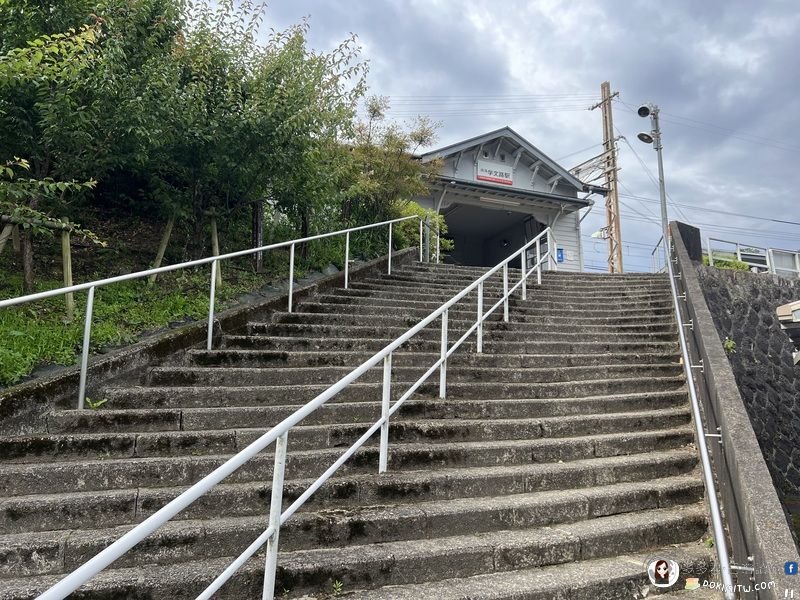 駅前的樓梯旁,有高野參詣道「京大坂道」說明板。