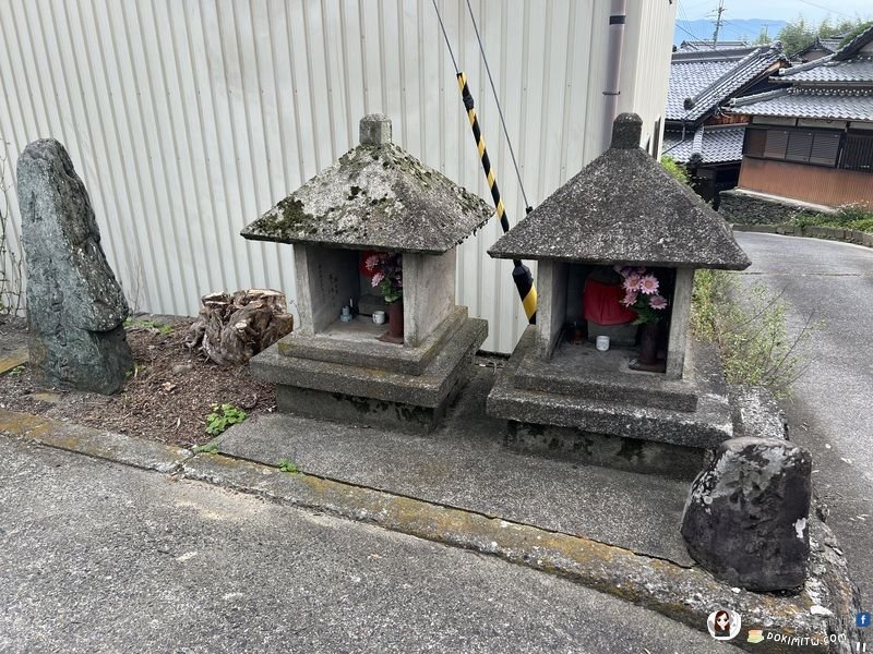 在幾戶民宅的桜茶屋村落,高野街道六地藏的第六地藏。