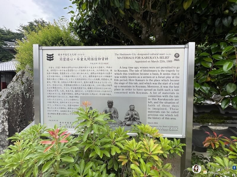 路旁,掛有「苅萱道心•石童丸關係信仰資料」看板。