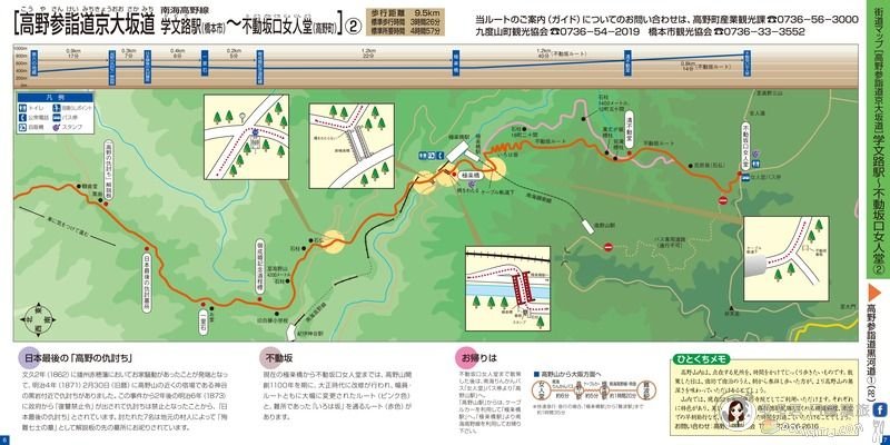 0733學文路駅→0750西光寺→0855日輪寺→0918千石橋→0934作水集落→1026「日本最後的高野仇討」解說板→1048白藤小學校→(1112-1230)走錯路→1255極樂橋→1359清不動堂→1423不動坂口女人堂