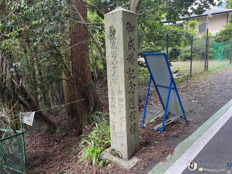 路過「昭和天皇御成婚碑」,這石碑建於大正時代,以紀念昭和天皇的成婚。石碑也是一個里程碑,上寫「高野山女人堂4,400米」。