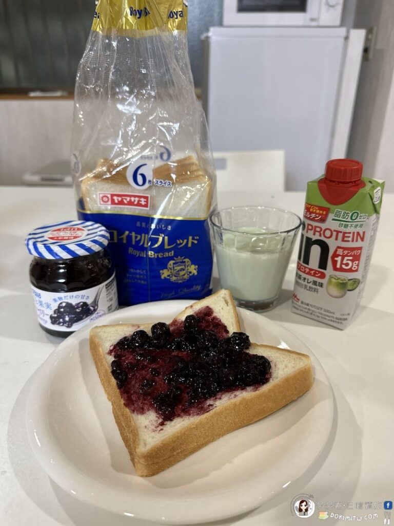 簡單早餐,吐司+果醬+飲品。