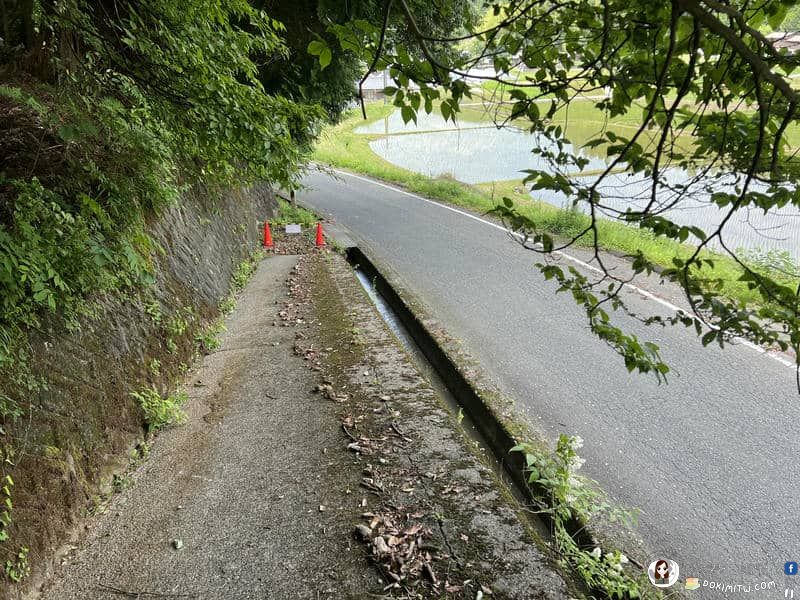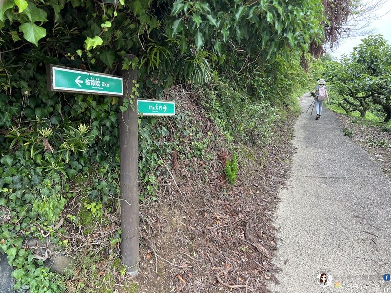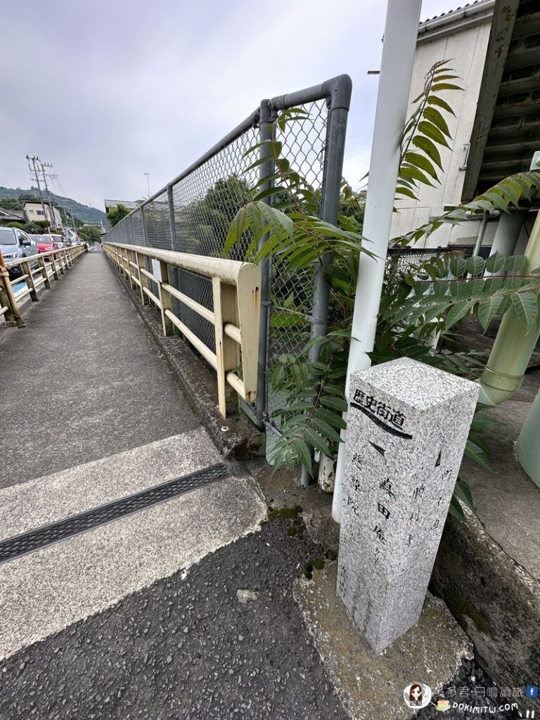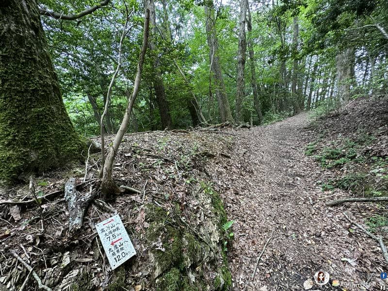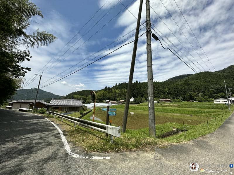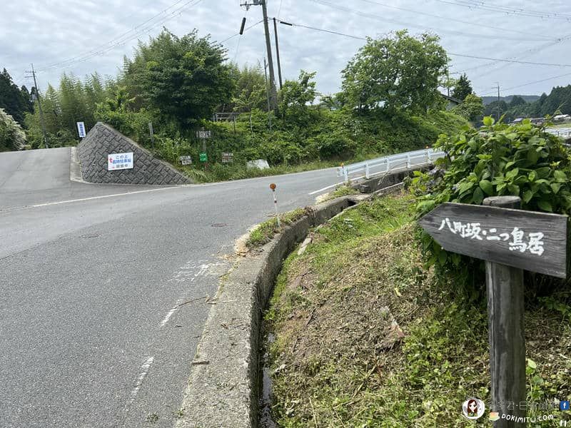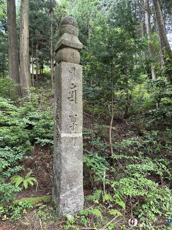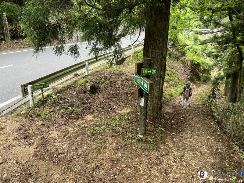 由矢立茶屋北側小路繼續行程,路標:大門5.8km、慈尊院12.9km。