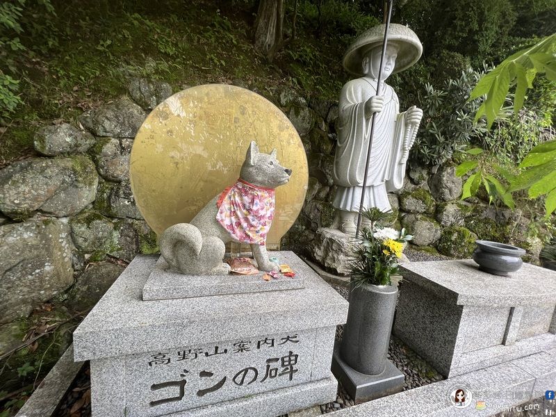 弘法大師像及高野山案內犬ゴン石碑