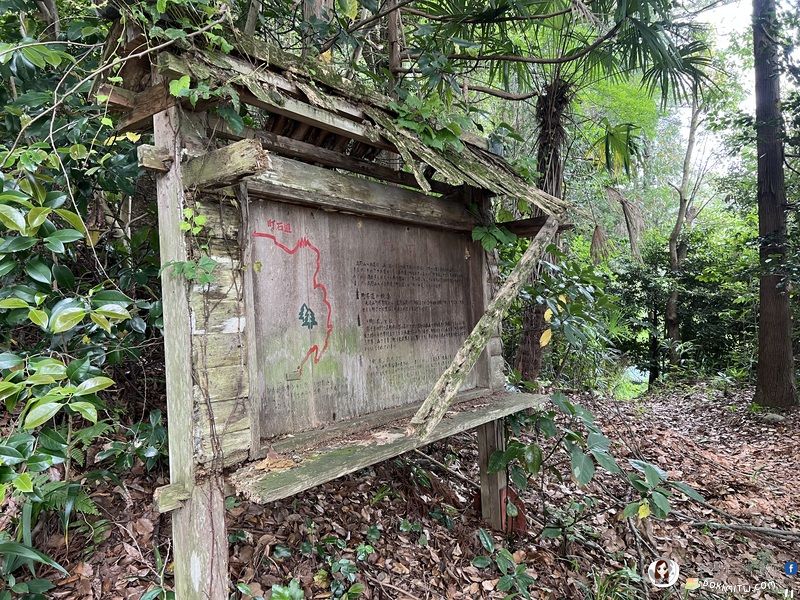 「町石道」說明看板,早已破碎不堪。
