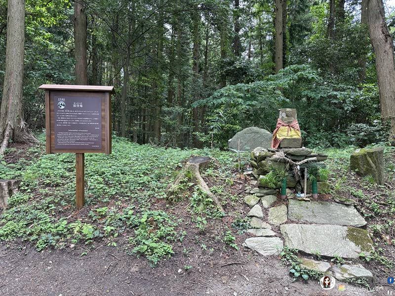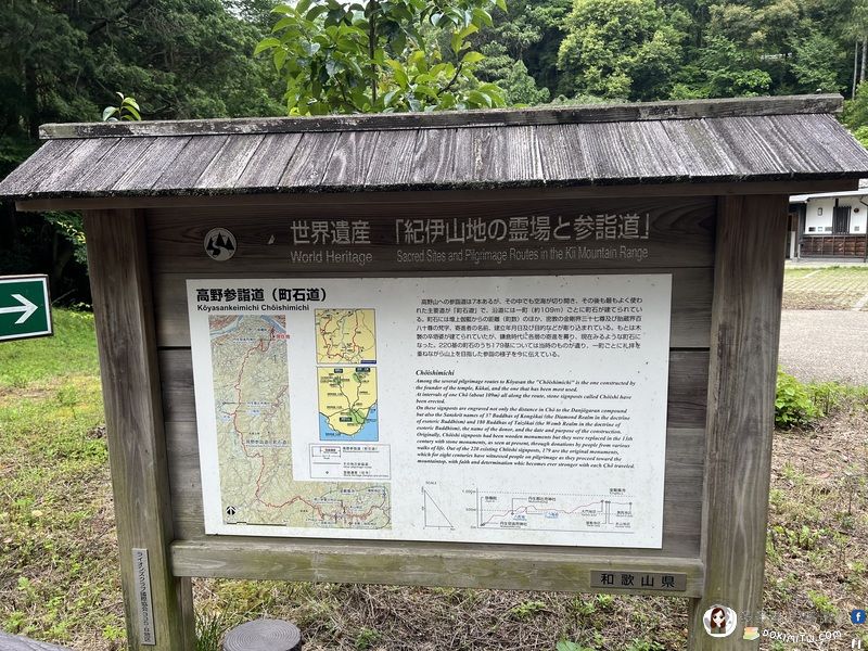 神社後面的停車場,一幅高野參詣道「町石道」說明看板。