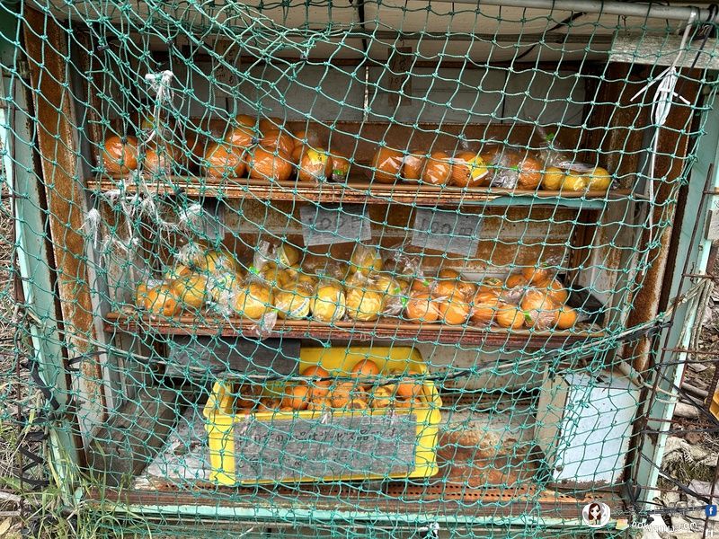 路旁無人商店,出售水果,橘子一袋JPY 100,算是便宜的。
