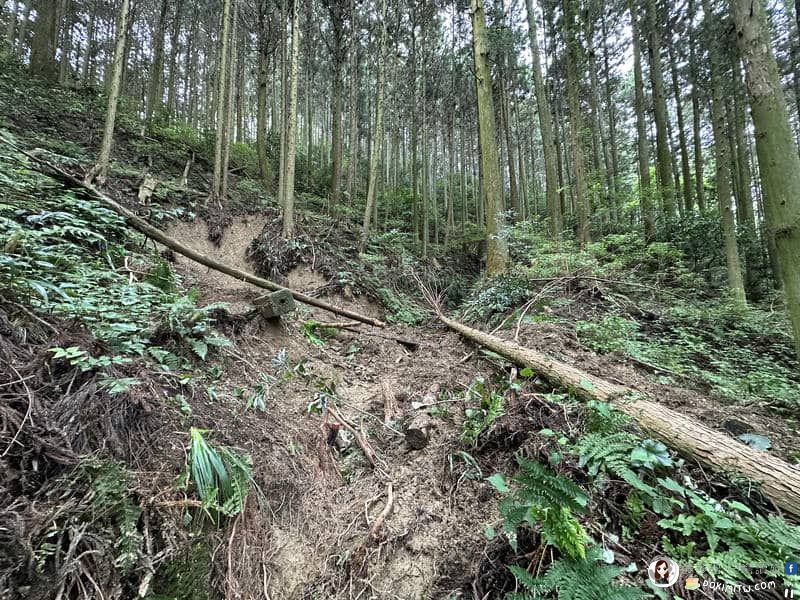 颱風過後,古道附近土石流失位移情況,這是接近雨引山分岐路口的地方。