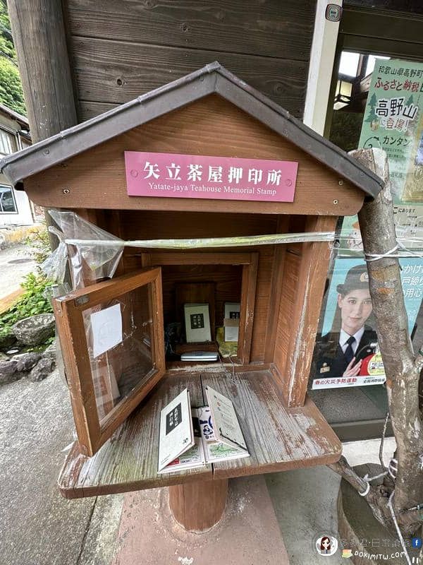 高野參詣道「町石道」,「高野七口押印帳#17:矢立茶屋押印所」,放置在矢立茶屋前角落,押印不受時間限制。   (這裡也放置「高野七口押印帳」讓遊客自由取用)