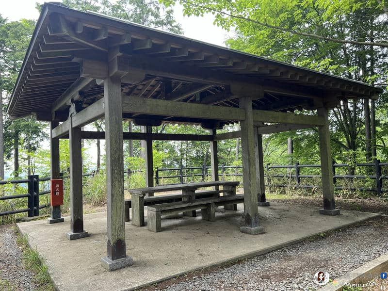 <08:15>,到了展望台。登上町石道,第一個可以休憩的地方,這裡有涼亭、長凳和桌椅。