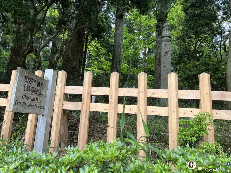 最終町石#1,在路旁木欄珊內,沒注意的話很容易錯過。