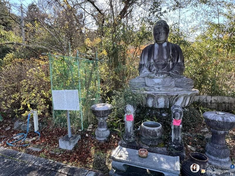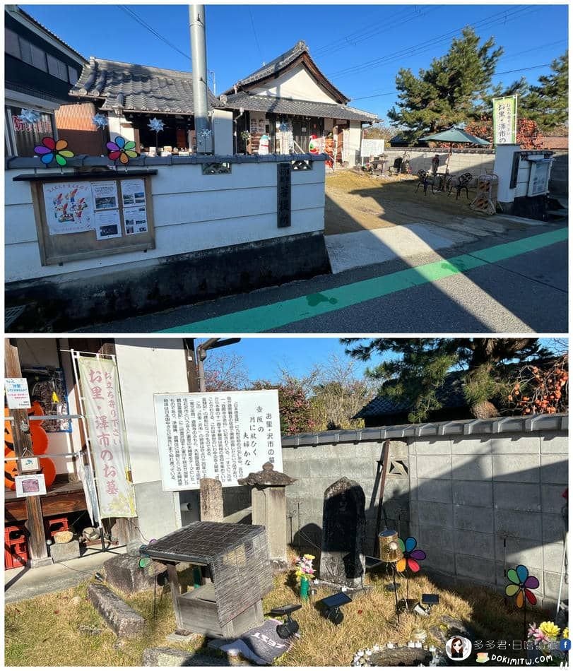 路過「信楽寺」,門前右側為「お里・沢市之墓」。(這盲人夫婦與壷阪寺相關後面將敘述)