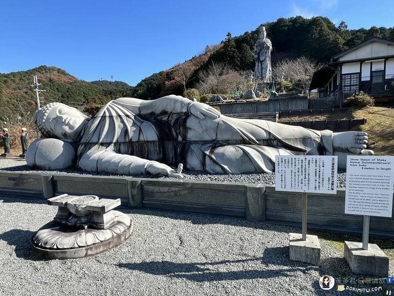 「天竺渡来 大觀音石像」,全長20m,總重1,200噸,於昭和58年(1983年)開眼。
