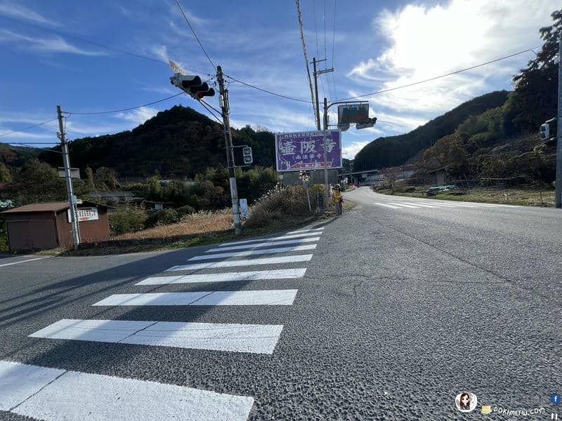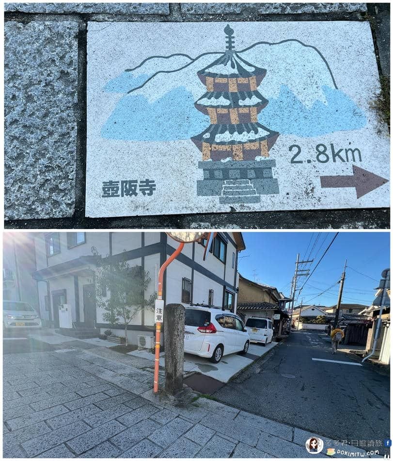 來到此處路口,地面路標指示:壺阪寺2.8km,取右。