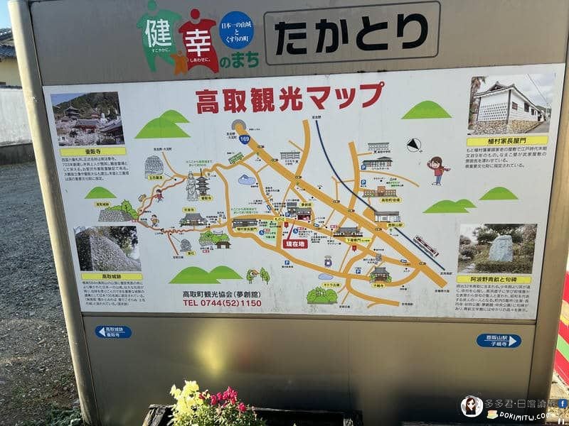 <08:49>在高取町土佐街道路口,看到這張「飛鳥觀光周邊案內圖」。