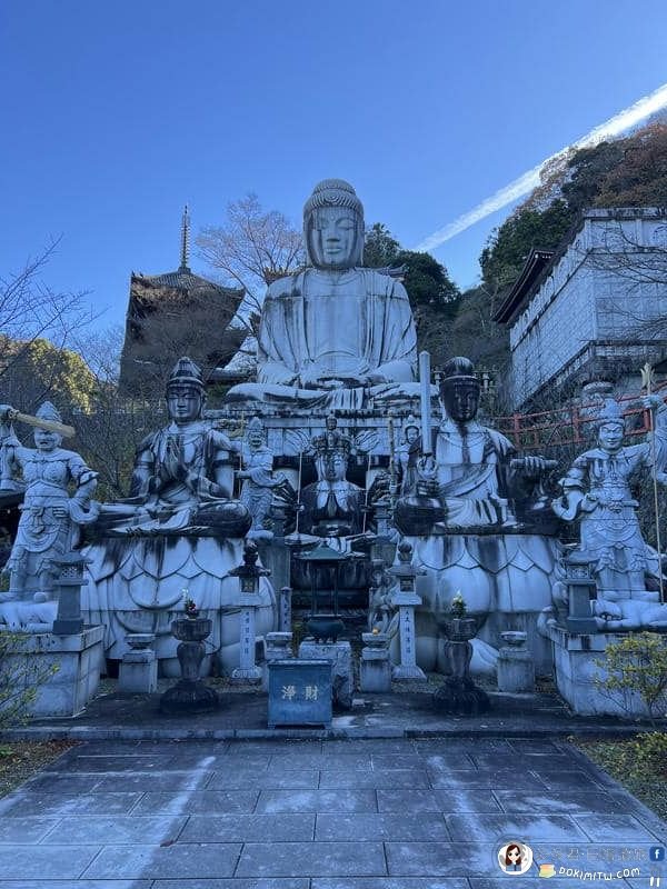 「大釋迦如來石像」全長約10m的大石佛像,春天宛如披上櫻花衣裳,被稱為「櫻花大佛」。