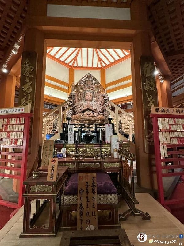 本尊「十一面千手觀音」,充滿東方韻味,雙手合掌於胸前,其目光充滿力量,讓人感到其普渡眾生的強大意志,同時蘊含眼疾治癒的力量。