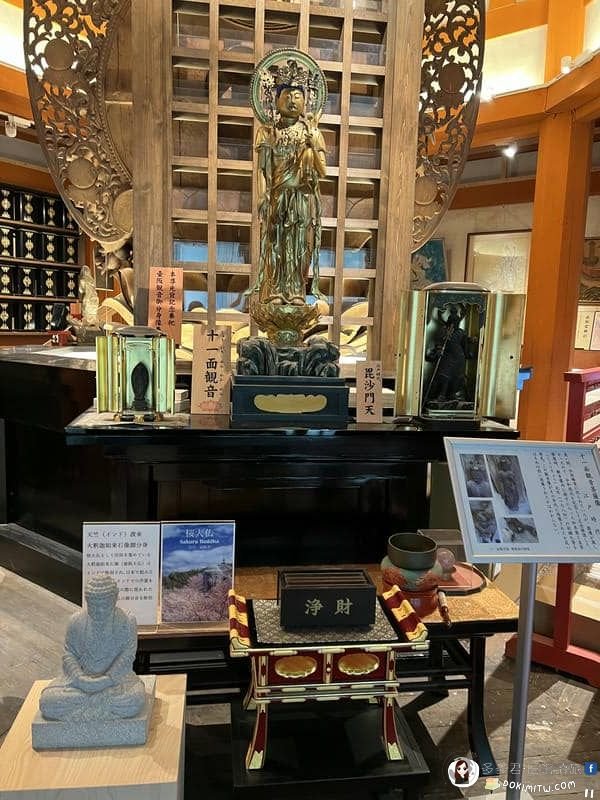 「大石堂」內,桌面上擺著2個押印章,是「第7番千手觀音」和「番外 佛舍利塔」。