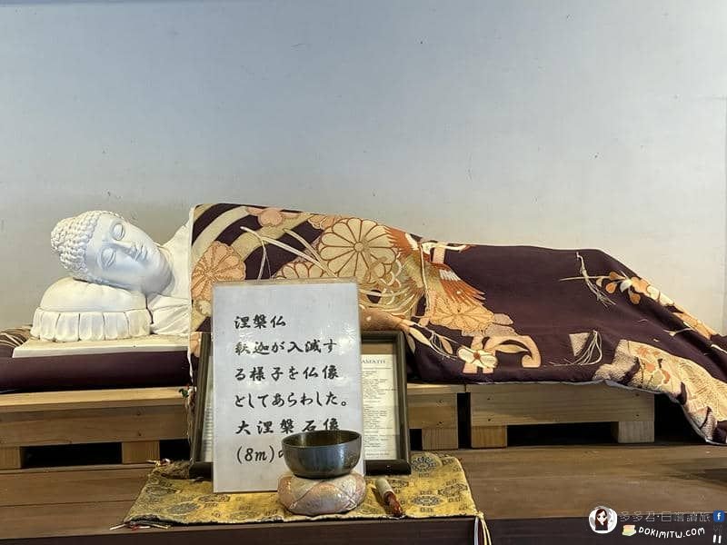 「慈眼堂」一樓,「大涅槃石像」描繪釋迦完成所有教義,即將圓寂。
