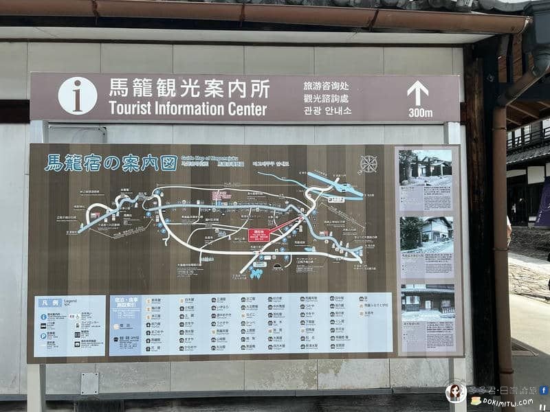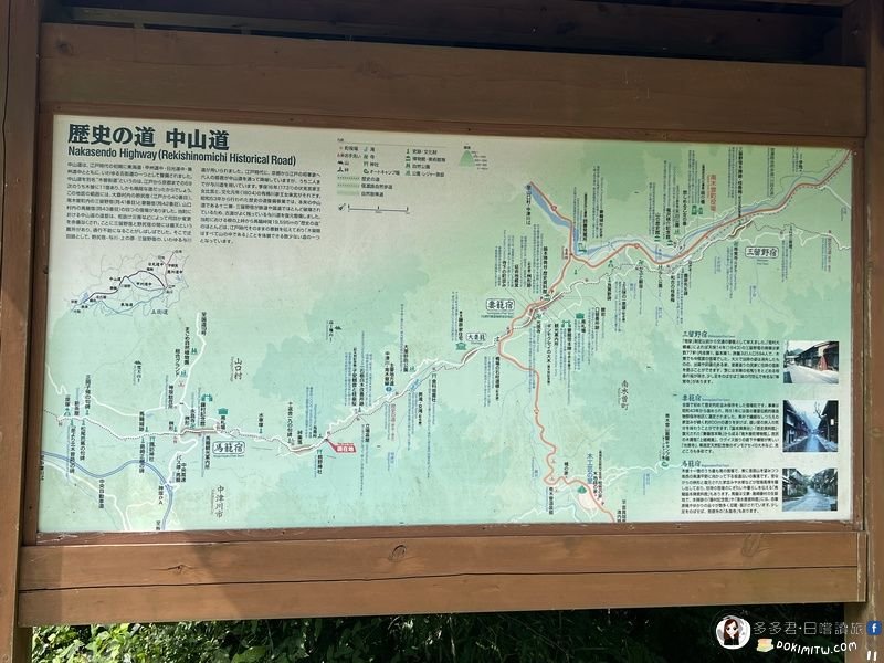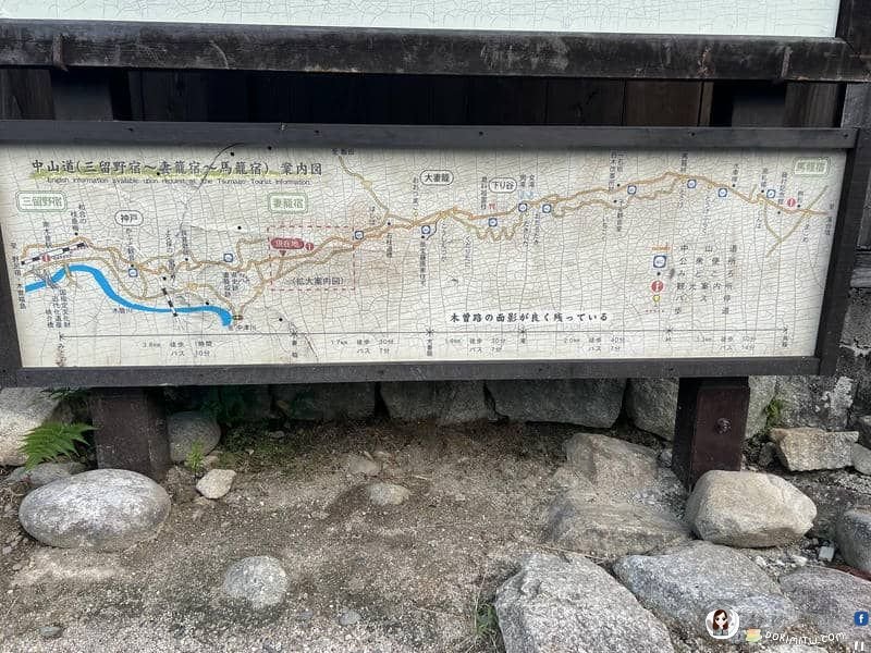 這張「中山道(三留野宿〜妻籠宿〜馬籠宿)案內圖」,正好是今天我們全部路程,掛在「妻籠宿」北端入口。