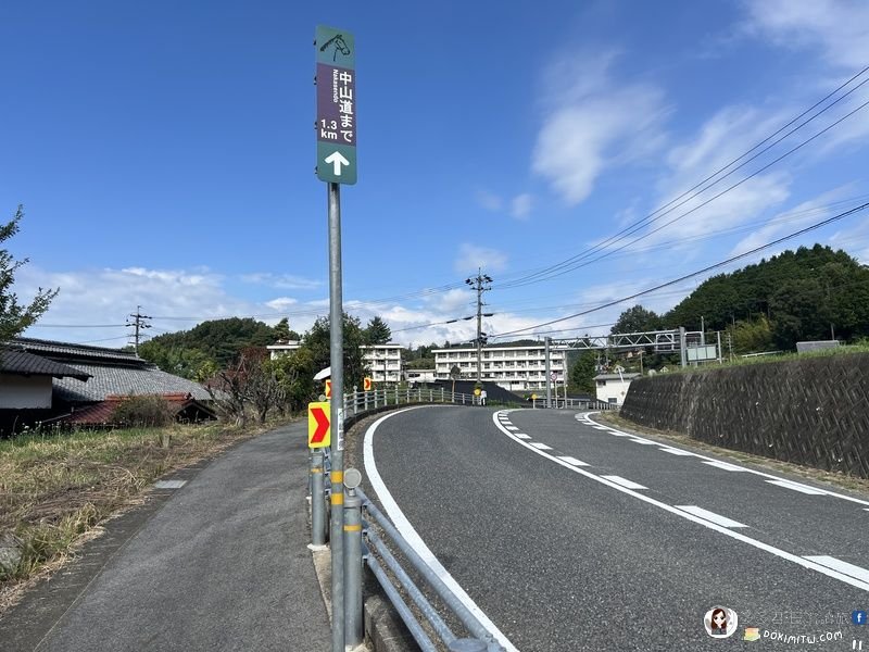 回到神坂停車休息區之後,由於交流道整建工程進行中,因此從停車休息區後方,沿縣道#7公路往馬籠宿走,路標指示「中山道1.3km」。