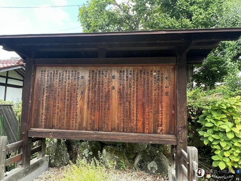 上入口處看板,介紹中山道、陣場、以及高札場。