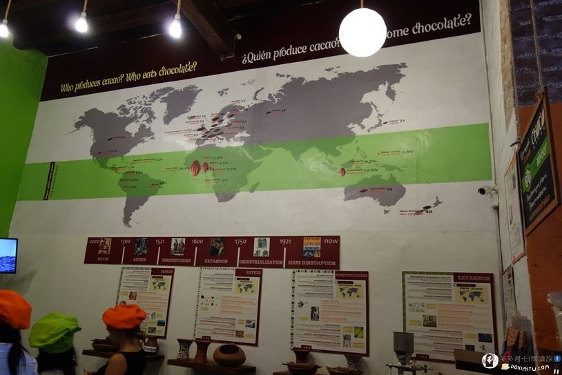 掛圖上,介紹世界上可可Cacao的生產與巧克力Chocolate的消費。