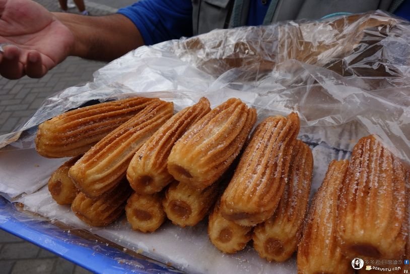 看到多人排隊購買Churro(西班牙油條或巧羅絲、吉拿棒),我們也跟著人潮。