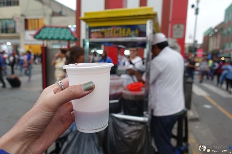牌樓旁喝了紫玉米汁Chicha