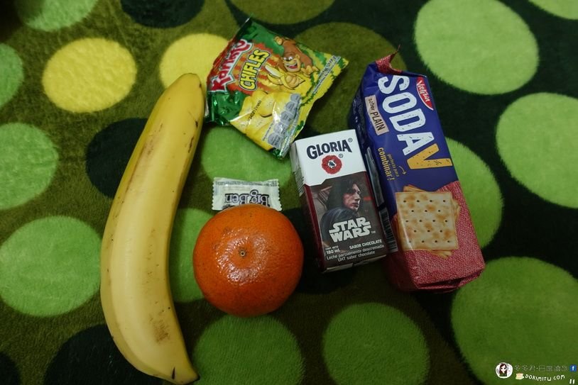 半夜12點多,拖著行李走去利馬機場。民宿蠻貼心的,幫我們準備一些吃的東西。