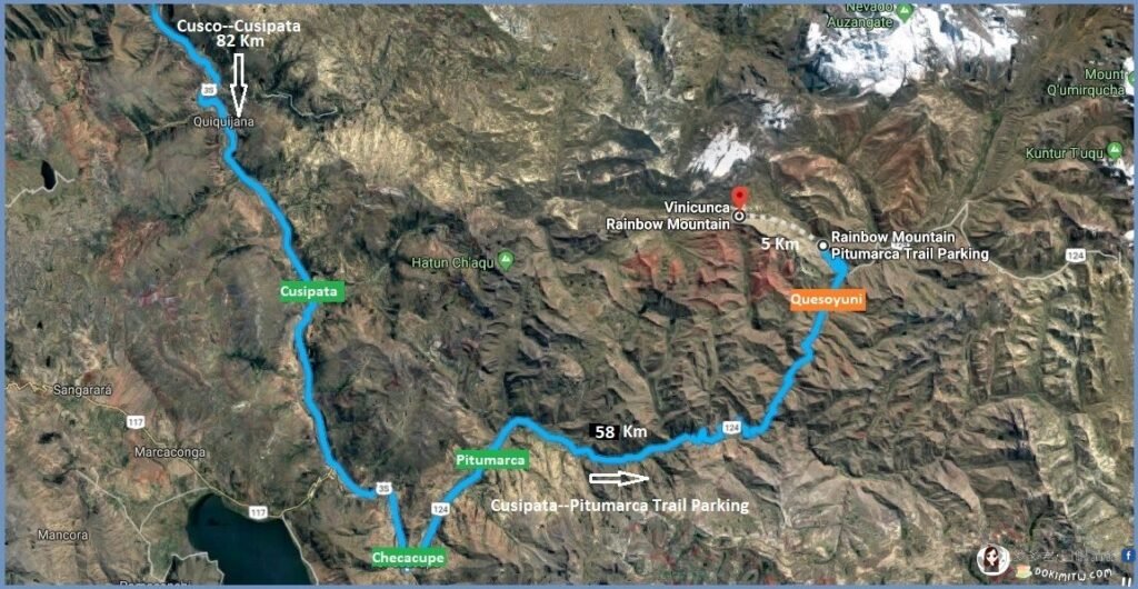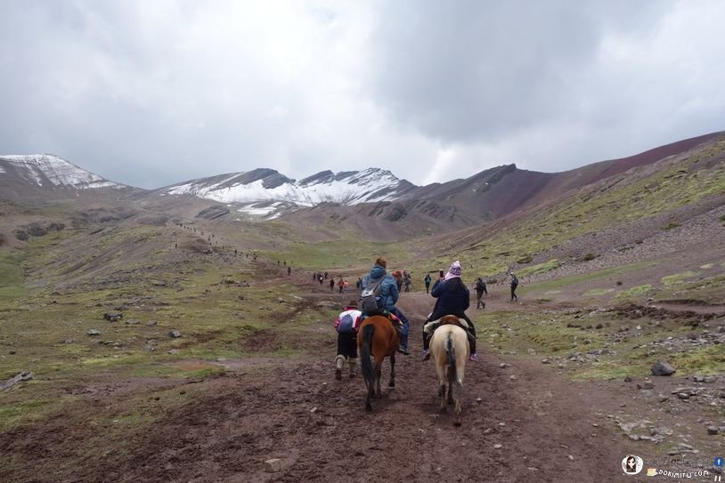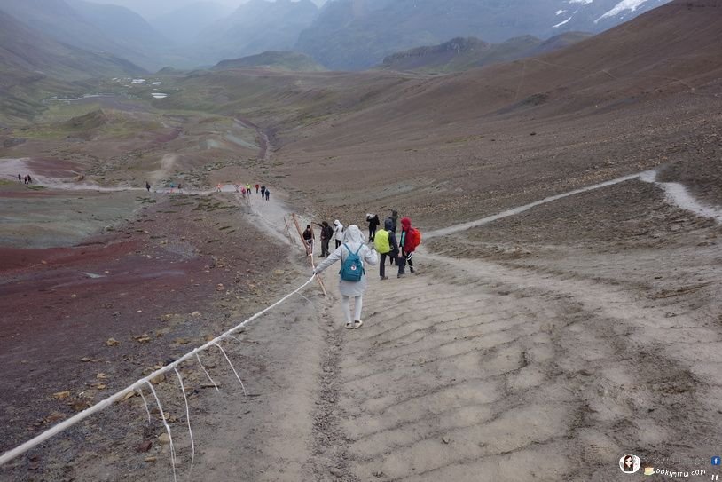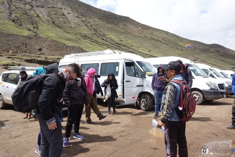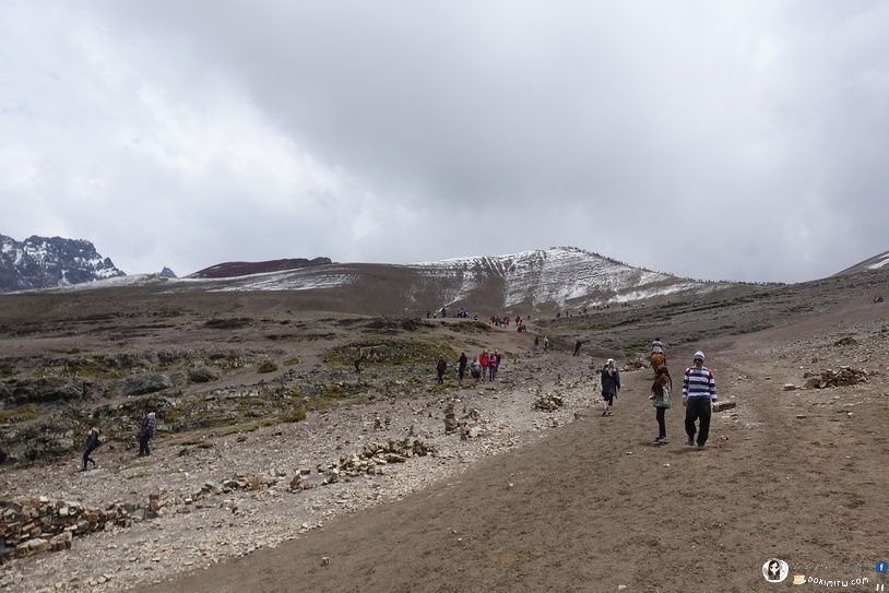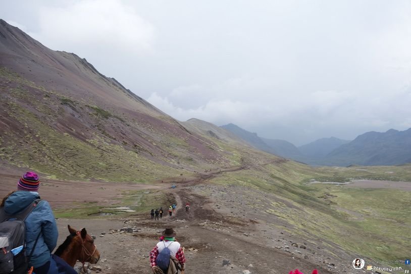 從入口點(Punto de Ingreso)到彩虹山(Vinicunca),里程約3公里,通常走路約80分鐘,依個人腳程和體力各有增減。也可以選擇騎馬,約40幾分鐘。但是,最後一哩路200米,一定得自己走上去。
