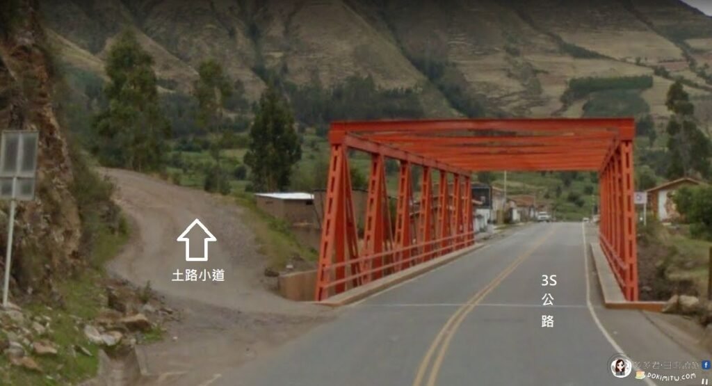 小巴在進入Cusipata小鎮前的鐵橋旁邊,左拐往東,開始走狹窄鄉間土路小道。(取自Google Map)
