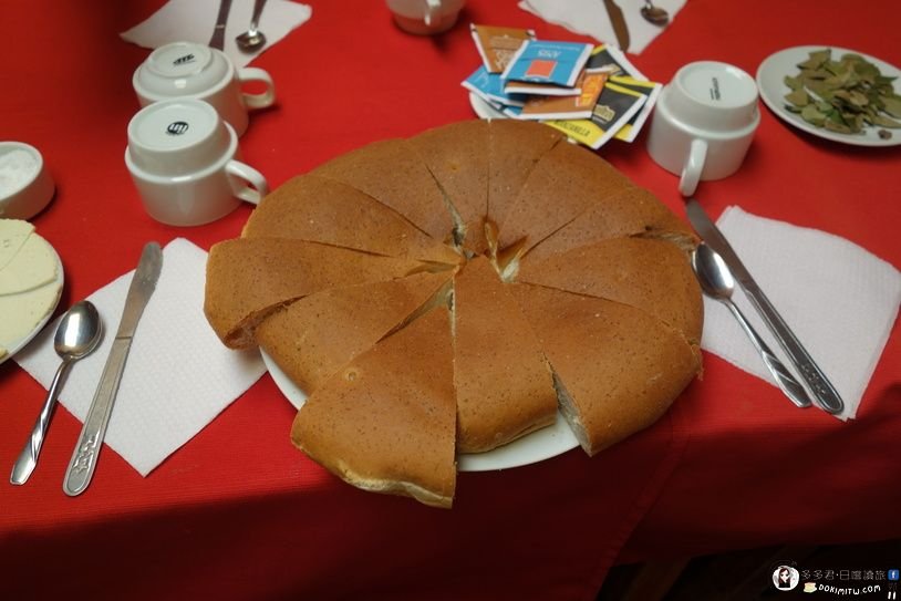 簡單的早餐,主要是這種麵包塗點黃油,再加上一小片炒蛋。多吃一點,以保持今天的體力能源。